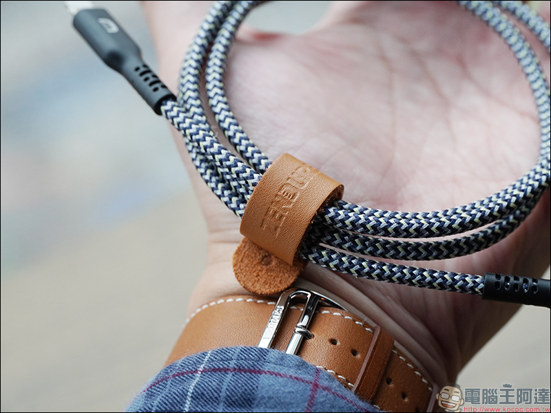 市面上許多品牌的充電線都有方便收納的束線帶,不過 Zendure 的選用皮質的束線帶,質感方面更加分: