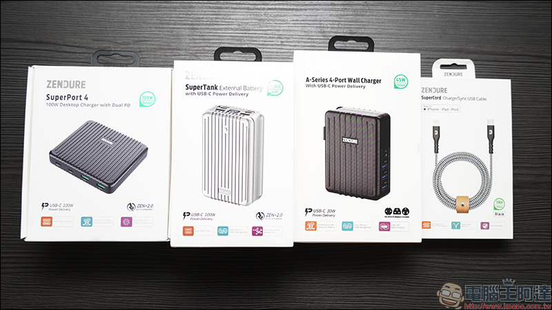 除了 Zendure SuperTank 行動電源,對於在機場、飯店內等國內外有插座的充電環境, Zendure 也推出多款強悍的充電裝置滿足不同需求。這次我們也同步開箱包括 SuperPort 4 極速充電器 、 A-Series 4-Port Wall Charger 萬國充電器和 Apple MFi 認證 USB-C to Lightning 快充傳輸線這些充電配件。
