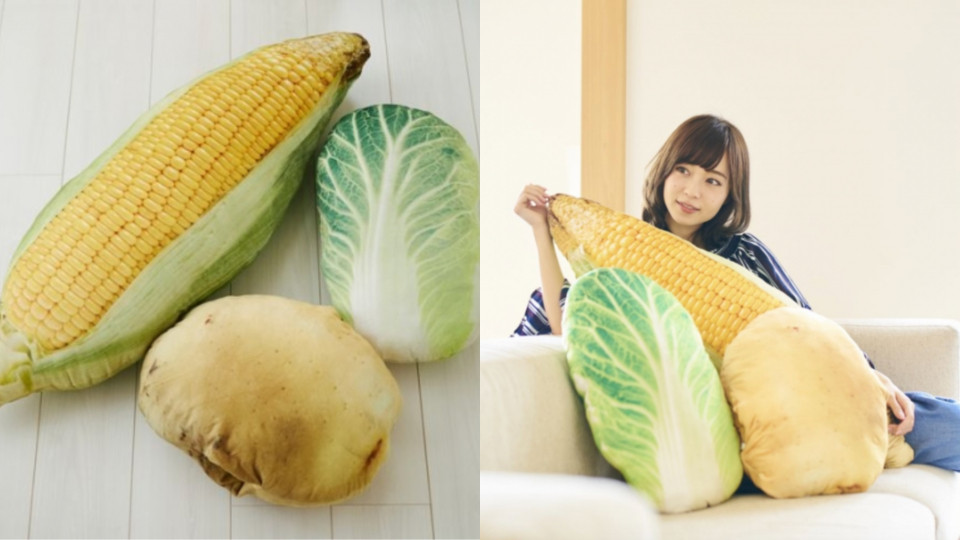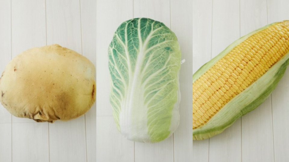 #超巨大食物抱枕-蔬菜/玉米3,218円(約NT.900);馬鈴薯、高麗菜1,944円(約NT.540)