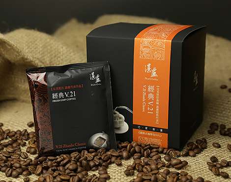 經典V.21是湛盧咖啡的經典代表作品湛盧烘豆師在2005年,將亞洲、非洲、美洲七款精品莊園生豆配方,分開烘焙之後以完美比例調配,經21次調整後,推出這款口感層次分明,香氣明亮清揚,且淺深焙風味兼具的咖啡。