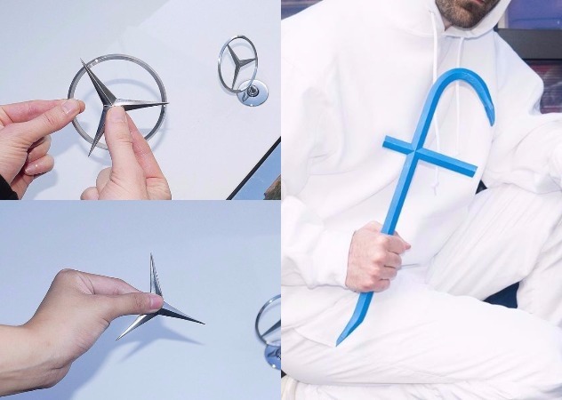 還有不能錯過的賓士忍者飛鏢以及Facebook撬棍,防身效果應該都很讚!真是不管什麼Logo都被他拿來改造一番!除了造型之外還兼具實用性(笑~