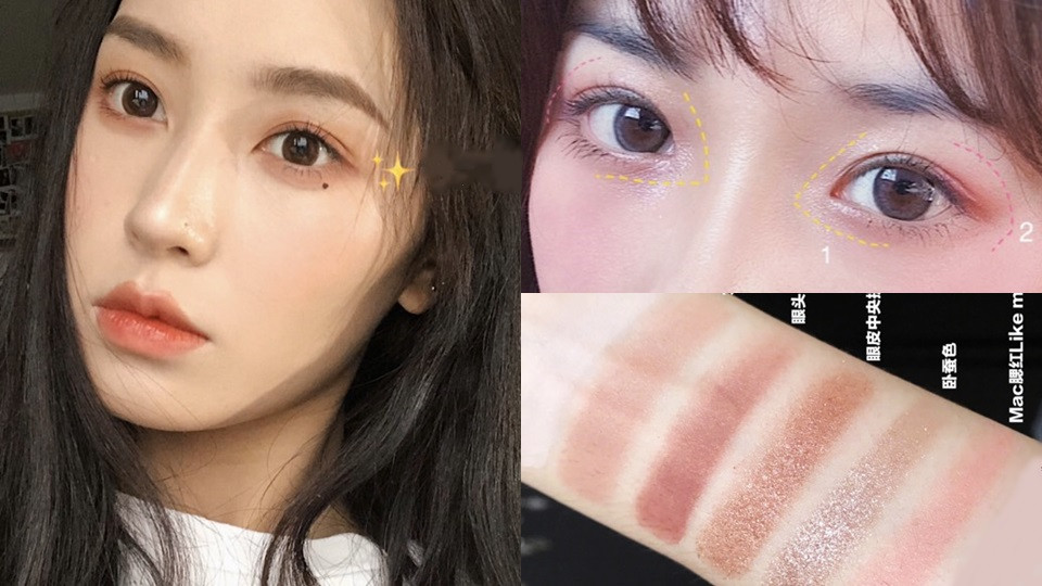 眼影可以說是主宰這個妝容的色調關鍵!不過比起一般眼影多層次暈染的畫法,建議只要使用雙色眼影做漸層,這樣更能表現眼妝的輕透感!選擇霧面奶油栗色的眼影大面積畫在眼窩處,以及玫瑰金或是橘棕珠光色在眼頭處打亮即可(如圖右上)~