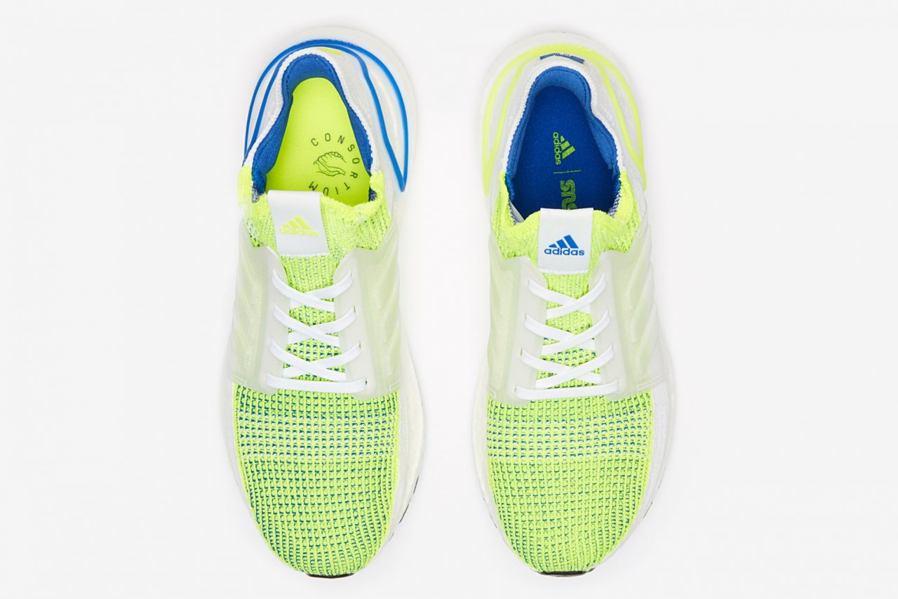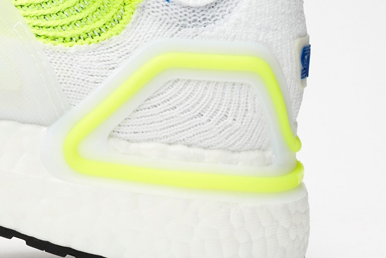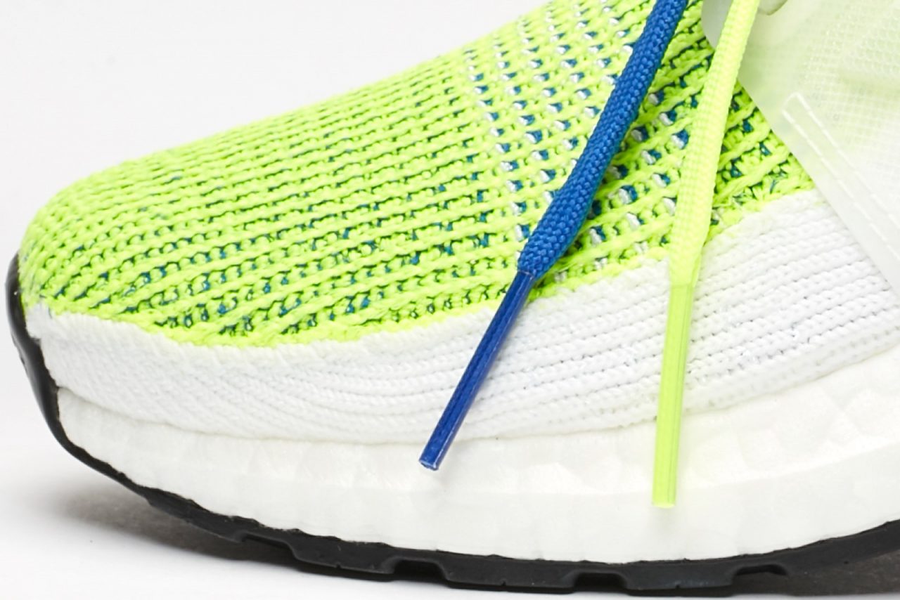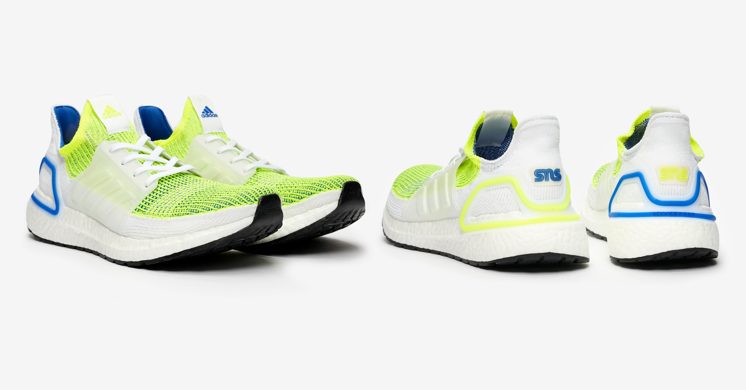 SNS x adidas Consortium Ultraboost 19 ‘Special Delivery’ 配色靈感源自於品牌專屬的送貨貨車,因此有著螢光綠和藍色相間的設計,實際上這樣子的配色,更是來自於 SNS 發跡地瑞典的國旗配色,而鞋款也在兩個配色上用了點小巧思,於鞋身穩定器上小小玩了一下不對稱的配色手法,另外鞋舌標誌、鞋墊同樣使用不對稱配色設計。
