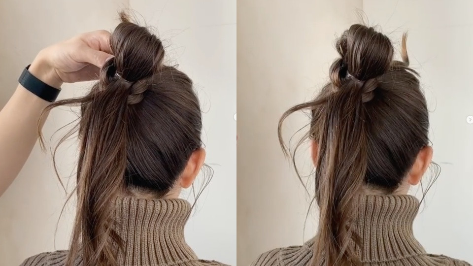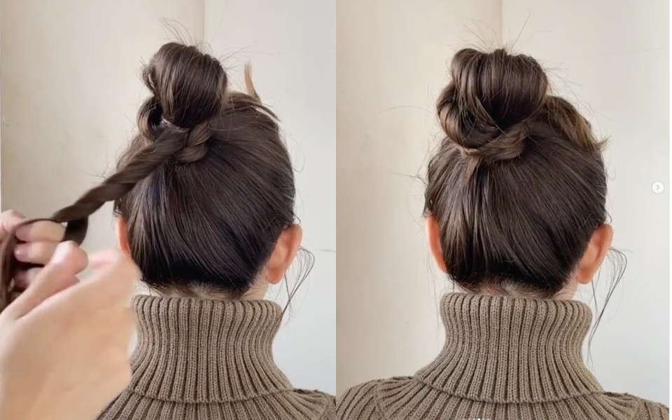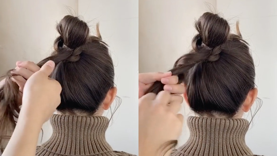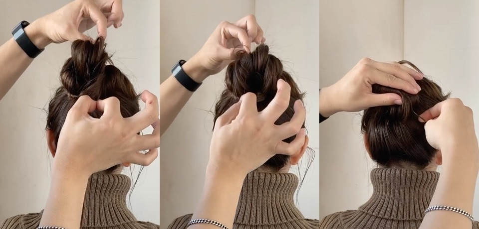 這樣的作法一來可以增加丸子髮量,二來可以讓丸子頭有更多造型感,也不容易顯老氣。