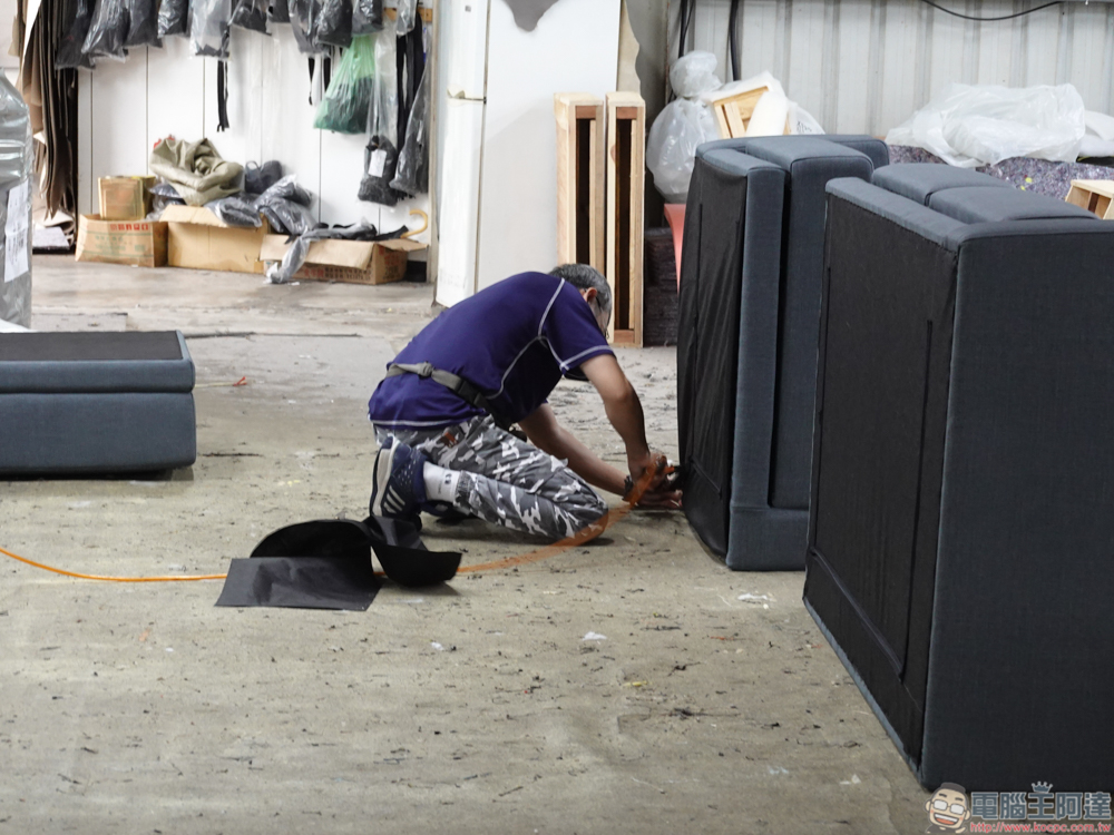▲裁剪完的布料就交給經驗豐富的師傅來進行縫製,用數十年時間磨練出來的工夫,製作與人體直接接觸的部分,謹慎細緻的縫線,可以支撐住全家在沙發上端坐睡覺滾動的日常生活而不綻裂。