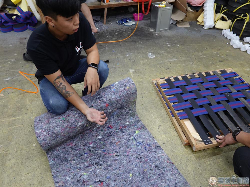 ▲接著把獨立筒跟泡綿層層疊上,製造出柔軟度適中的舒適座墊。