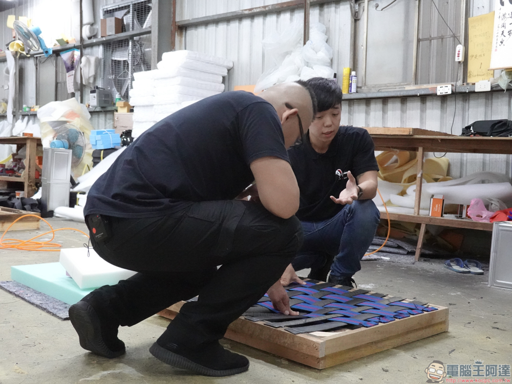 ▲把座墊安裝上骨架也是一門學問。照片可以看出五金滑軌組件結構,都很細緻而且井然有序又整齊。
