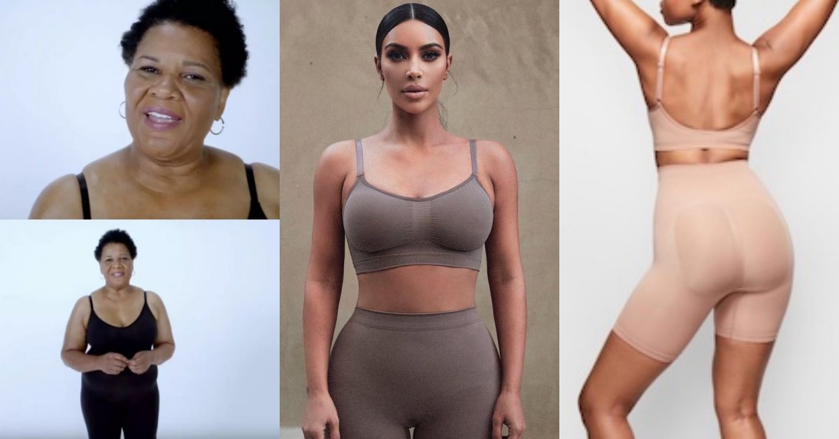 在品牌 Skims 推出初期,金卡戴珊中來一位 64 歲的剛出獄的老奶奶做代言,而形象照上妳也看不到骨瘦如柴的女性鏡,全都由各色人種及豐腴身形的女模做拍攝,她用自身的力量點題,去告訴大眾女人的美不分身材也不分年紀,更沒有背景的差異。