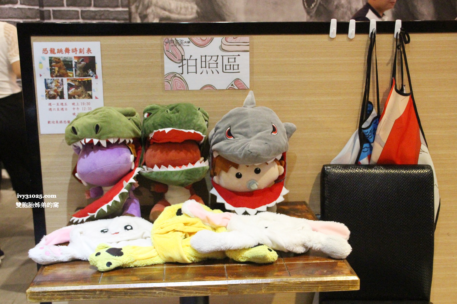 恐龍玩偶道具拍照紀念一下,或是和注意恐龍跳舞時間可以一塊合照。