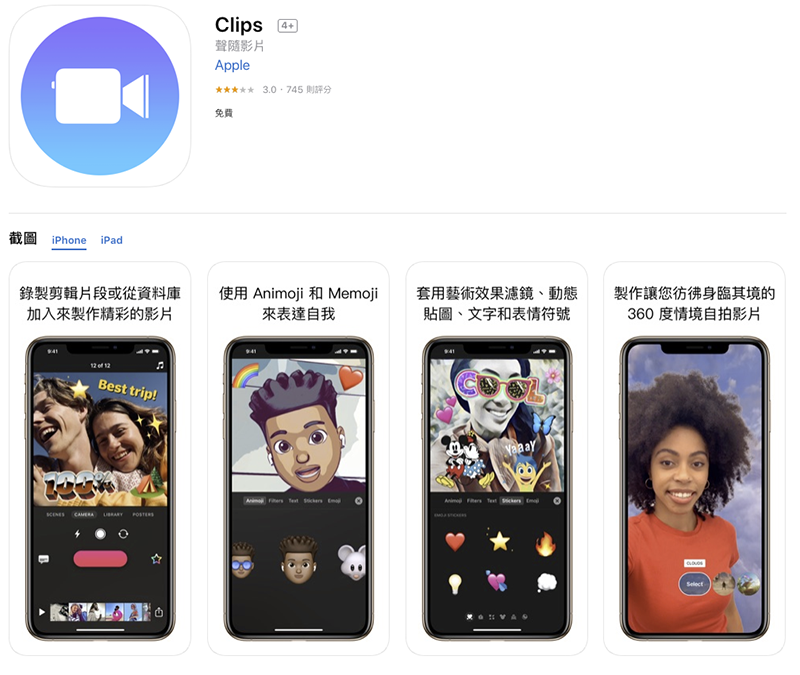 Apple Clips 下載(App Store 傳送門)
