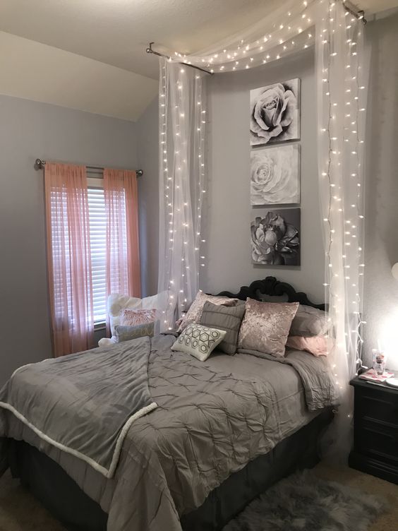 把窗簾加上小燈泡也能做到同樣的效果,更有照明的功能,絕對是小資女們必備的選擇!