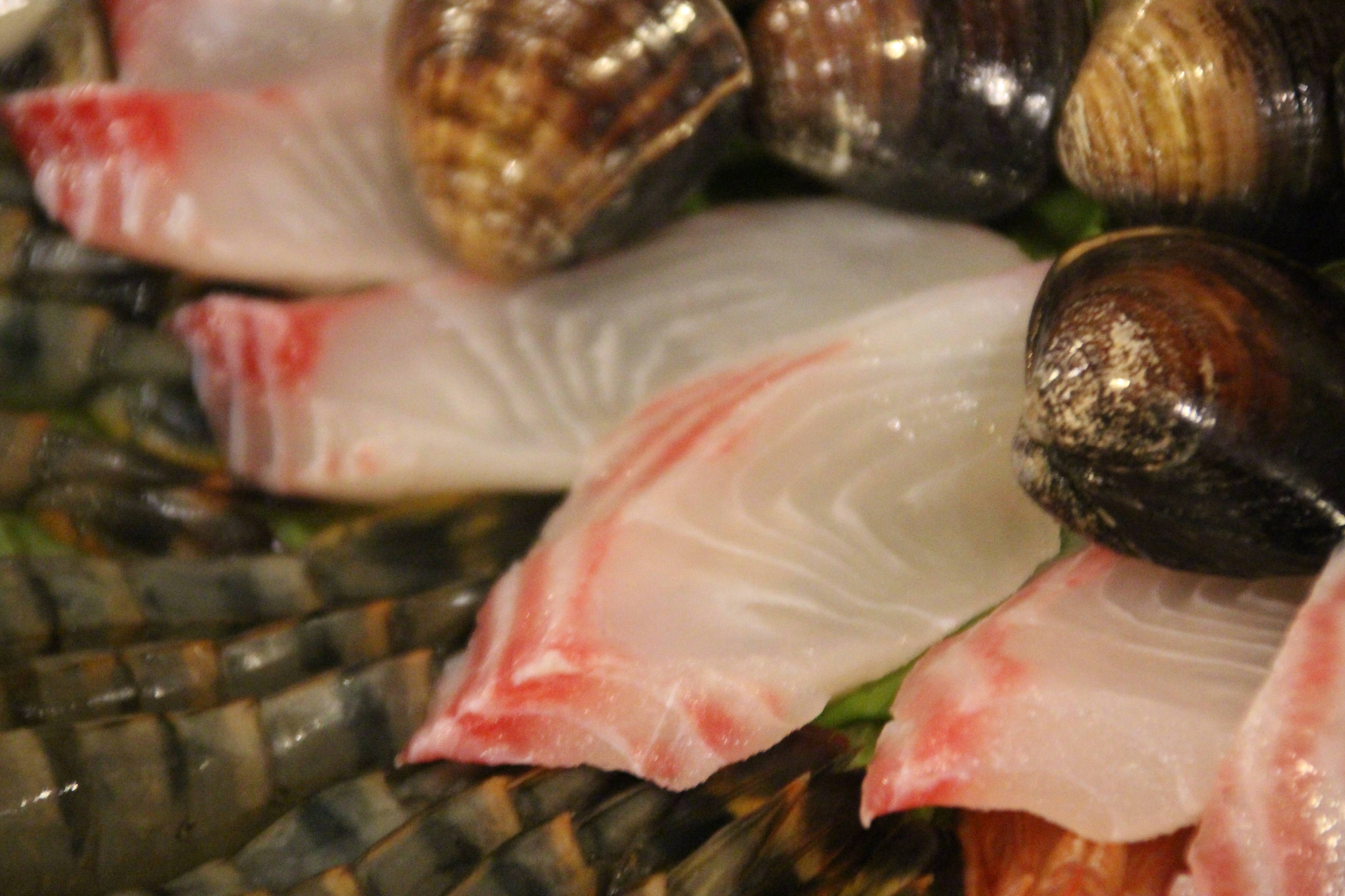 可以看到一隻隻新鮮的蝦子和弟弟最愛的天使蝦,鯛魚片一份。