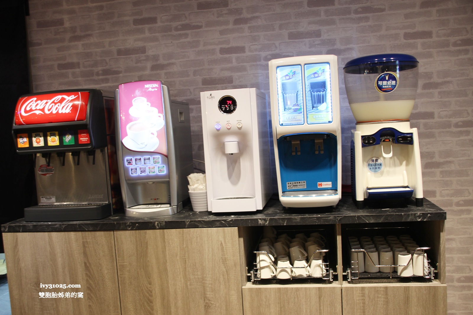 點完餐就可以到後方的飲料吧,取用你要喝的飲料,下方有杯子可以自由取用。
