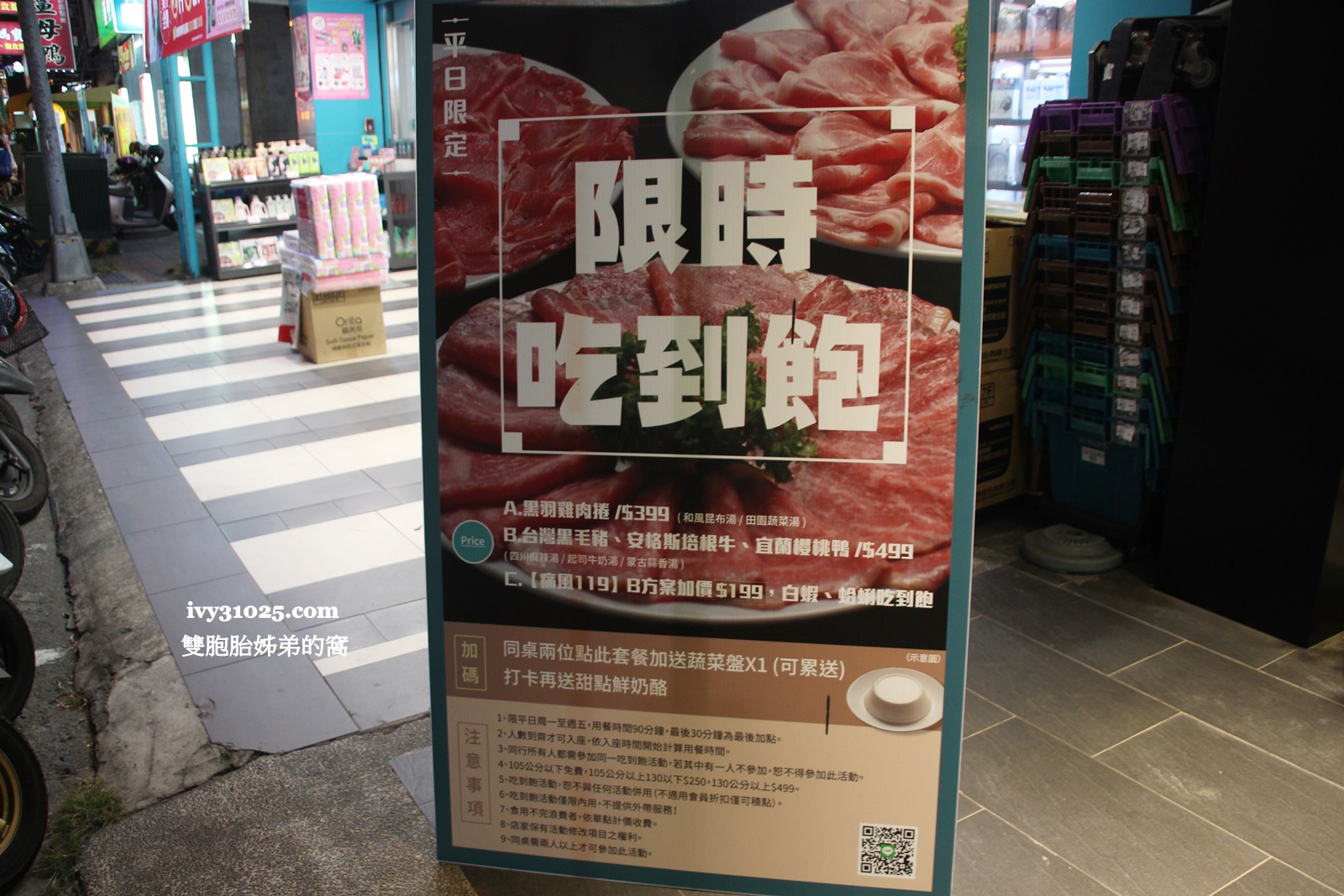 更推出平日限時吃到飽專案ABC方案,和加碼同桌兩位典此套餐加送蔬菜盤[可累送],打卡再送甜點鮮奶酪。