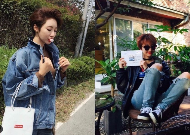 當年帶起飛行夾克風潮的俊熙,讓「短髮+男友夾克」成為她的經典造型之一,這款ootd有小男孩的中性感,搭配紅唇特別性感~內搭叛逆少女的破褲和球鞋,整個帥的不要不要的。試想長髮女星如秀智,可能就沒辦法完整呈現出這種俏皮感!