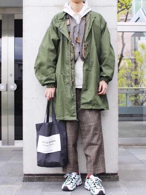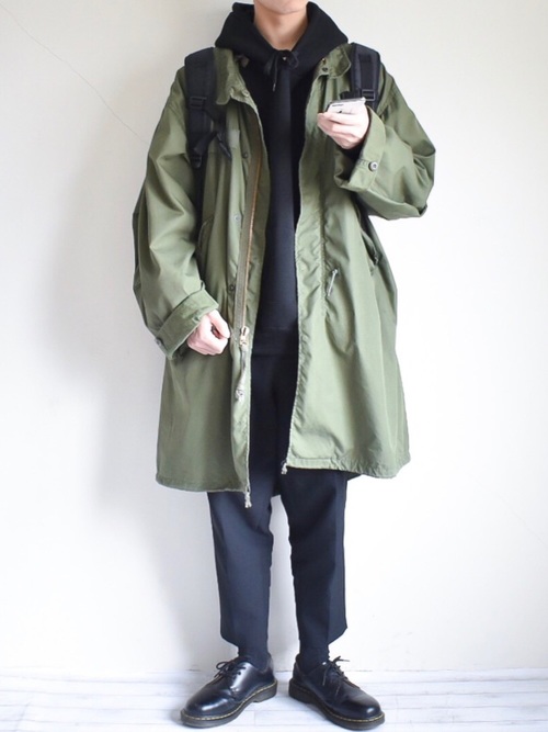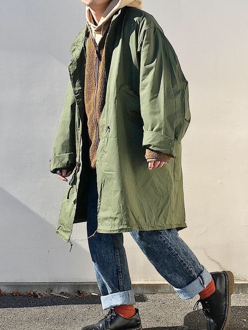 熱衷於古著的人士多半皆會投入軍裝的懷抱,而在眾多款式軍裝中,M65 Parka 可說是多數人心中的入門經典。M65 Fishtail Parka 最初是針對嚴寒的氣候,讓軍人能罩在衣物最外層作為防風、擋風之效用,因此普遍的版型尺村皆會略為寬大,而M65 Parka 最大的特色正是從背面看其衣襬中間呈現開岔,像極了魚尾 (Fishtail);此外,多處便利的抽繩以及可拆式的連帽設計等亦是 M65 Parka 的特色之一。