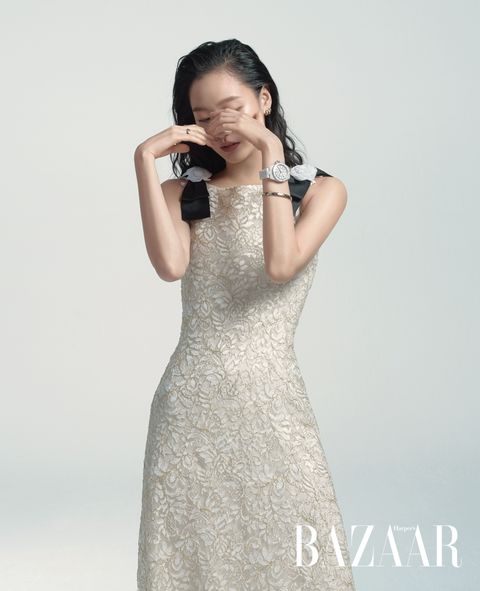 金高銀從愛情電視劇《孤單又燦爛的神—鬼怪》到探索親情議題的電影《季春奶奶》,總以精湛的演技令人印象深刻。身為香奈兒(Chanel)大使的她,在本次與BAZAAR的拍攝中,笑著說道:「穿上Chanel套裝後,就好像瞬間變成了另一個人!跟演戲一樣,真有趣。」接著開始暢談、與我們分享著如何快速在短時間內抽離角色,同時維持工作與私人生活間完美平衡的秘密。