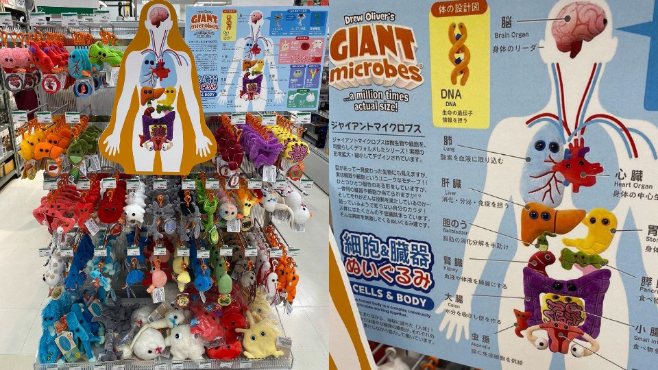 其實設計和生產器官鑰匙扣的公司,正是美國著名的「Giant Microbes」,該公司旗下專門推出「病毒、生物」的毛絨填充玩具,如紅血球、黑死病和伊波拉病毒的公仔。成立「Giant Microbes」的 Drew Oliver 生產這些公仔的目的,就是希望可幫助孩子們了解疾病和人體結構,達到教學目的。而近期Tokyu Hands才引進出售。