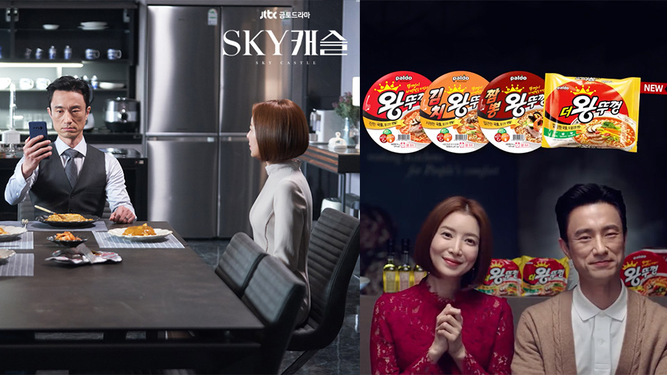 說到因劇代言,今年初的熱劇《Sky Castle》可說是帶動全劇組演員代言接到手軟!劇中雙胞胎媽媽為了反抗丈夫車教授,每天只給他吃泡麵,偶爾會換口味的黑色幽默讓觀眾笑翻!尹世雅與金炳哲也因此接到泡麵代言,廣告中延續劇中風格,真的超有梗!