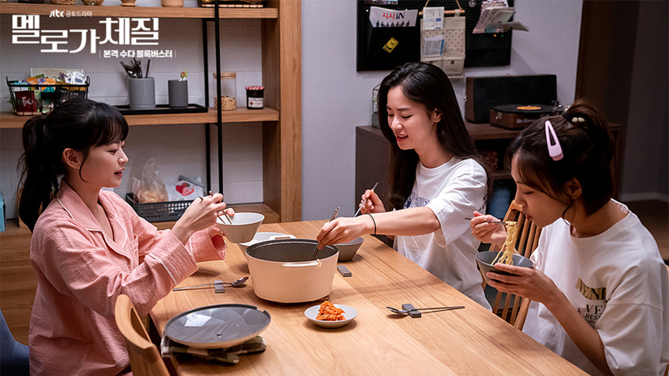 《浪漫的體質》於9月份劇終,劇中貼近生活的劇情與台詞受到不少觀眾喜愛,主角千玗嬉、全汝彬、韓智恩閨蜜三人日常就是在一起吃吃喝喝,聊聊生活瑣事。除了帶給觀眾共鳴,還經常讓人看餓了!