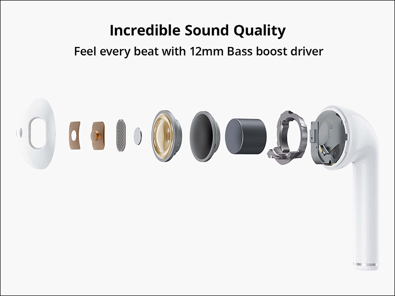 realme Buds Air 耳機採用 12mm 低音增強驅動單體: