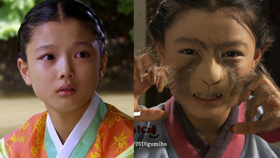 當時還是小童星的金裕貞也參演了這部,她飾演的正是韓多感半人半獸的小九尾狐。平時是人類的外表,但幻化成小九尾狐時,臉上會長出毛髮。不過比起九尾狐,這造型怎麼比較像妖狼啊?XD