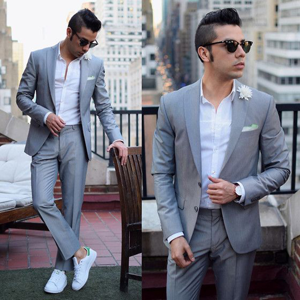 復古球鞋可以說是一直以來都走在流行趨勢的前端,尤其是近幾年的韓風崛起,讓正裝混搭球鞋的造型顯得不再是「妖魔異端」,反而讓過於正式、成熟的西裝增添了一點年輕人的氣息。穿著復古球鞋搭配西裝,建議搭配剪裁合身、款式休閒一點的西裝,顏色部分則可以挑選淺藍色、灰色、米色等顏色。