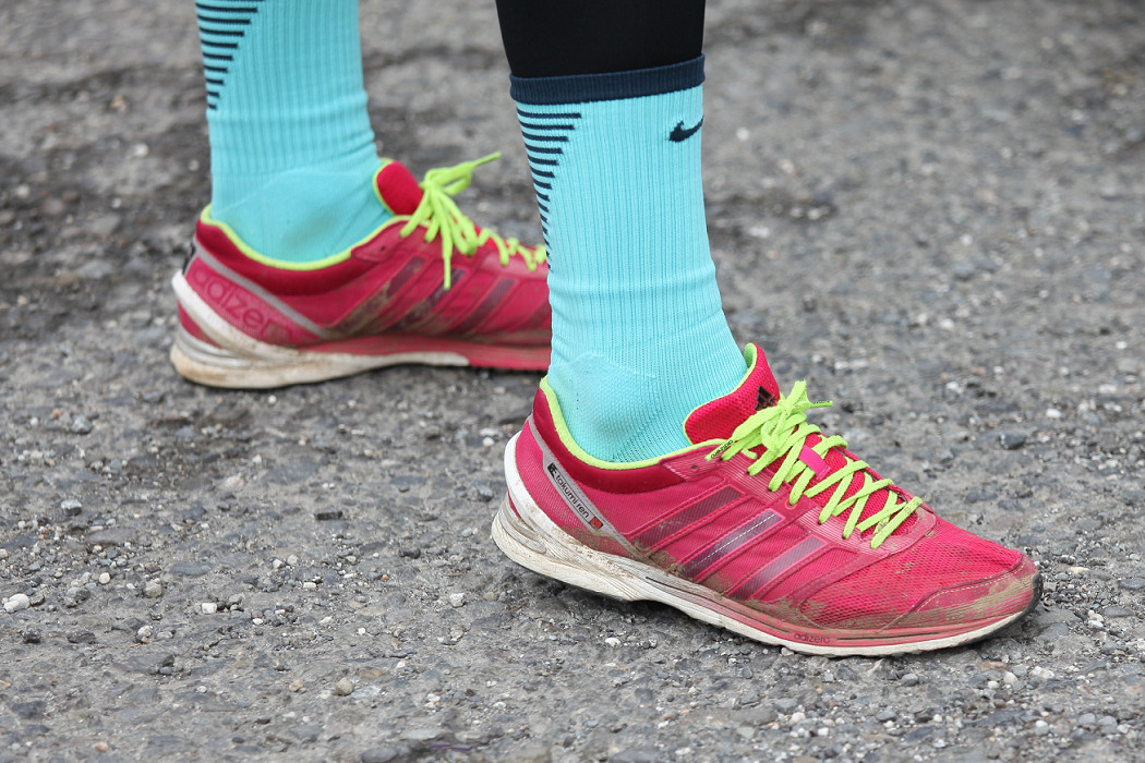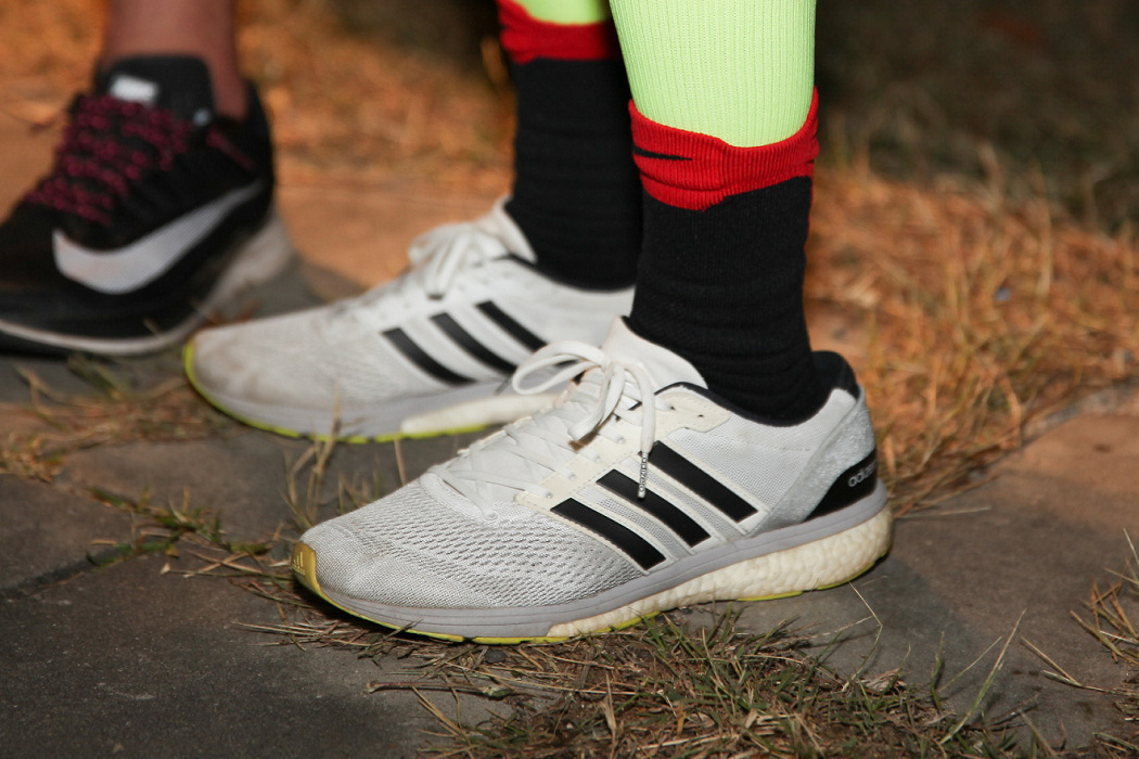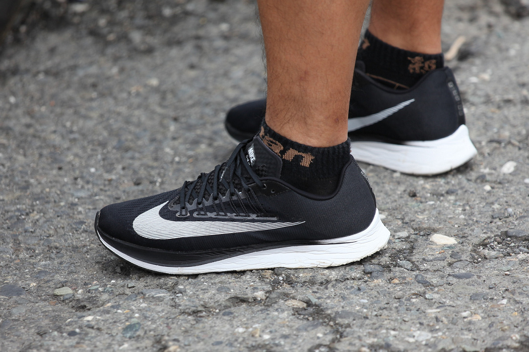 大概就是山路時選厚底;平面路段就挑薄底,畢竟我們還是比較注重緩震與保護性,這樣才能好好照顧膝蓋。我們這組剛好幾乎都穿 Nike Zoom Fly 家族鞋款,像是新的 Nike Zoom Fly 3 中底就有內坎炭板,向前推進的時候更有感覺。另外還有特別穿上從美國買回來的 Nike Zoom Fly SP 芝加哥馬拉松線定配色, 基本上我們現在就是求帥不求快。