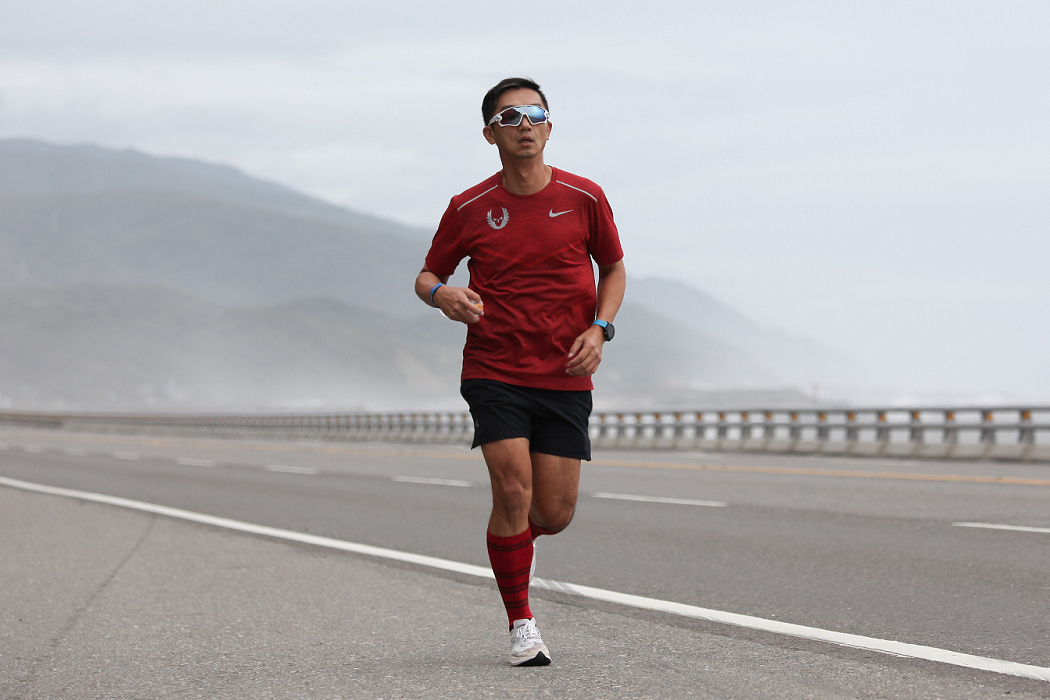 大概是月跑量增加了一倍之多,雖然我們平常跑量大概只有四、五十公里,而 11 月時我們也有一起集訓,主要是在兩個地方,一個是大直劍南路那邊慢跑或著到台北田徑場練間歇,但其實平常各自還是會跑山、騎自行車或三鐵比賽來以賽代訓。