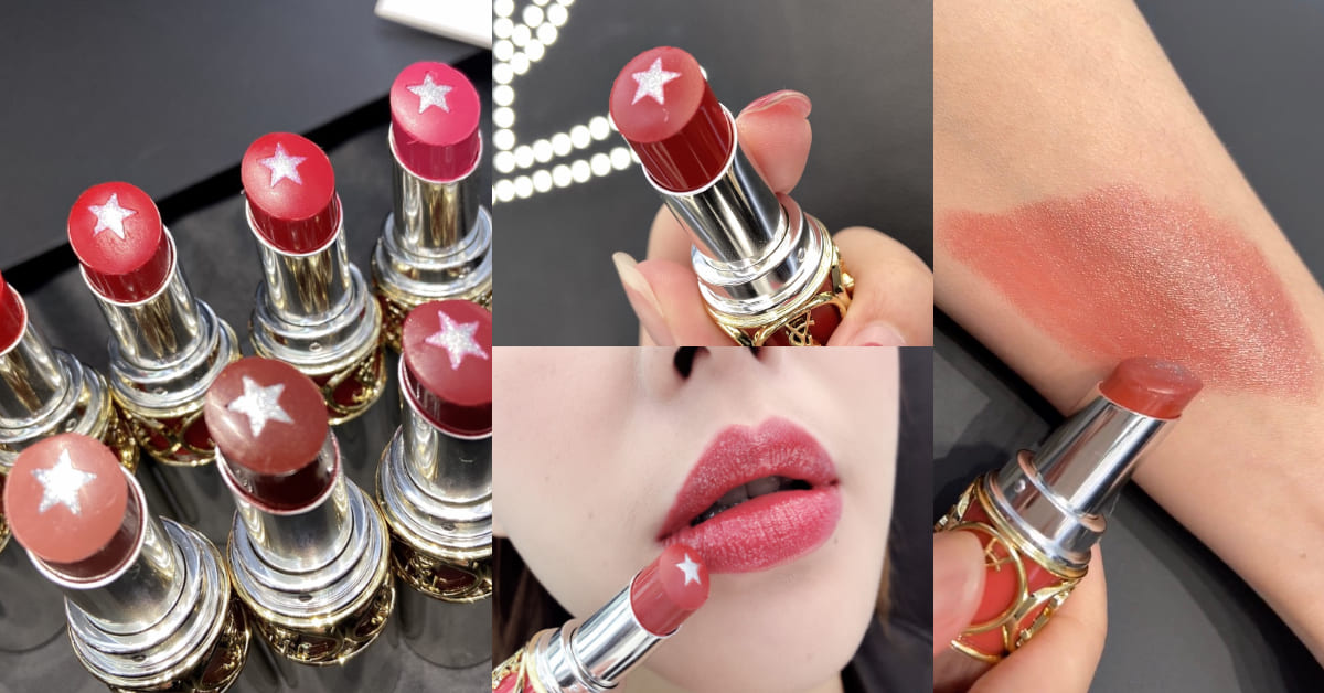 《YSL》當家明星商品情挑唇膏系列你一定不陌生,銀色管身上刻印著立體LOGO壓紋,精緻地宛如藝術品的手感,更是Dcard公認一定要入手的高顏值唇膏之一!而眼看新年即將到來,聖羅蘭乾爹將情挑唇膏再升級,全新情挑誘吻星鑽蜜唇膏系列,不只色澤水潤帶有星光碎鑽,每一支唇膏中還包著銀色的星星夾心!雙色水感質地一抹上唇,還能創造Q彈豐潤的妝效呢!