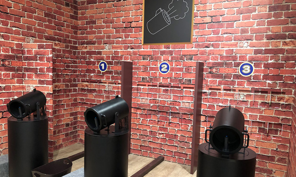 哆啦A夢常見的道具「空氣砲」在這裡也體驗得到哦!使用「空氣砲」瞄準磚牆上的目標物,一一擊破就挑戰成功啦!讓大家也能跟哆啦A夢一樣帥氣的使用武器「空氣砲」!實在太滿足了~