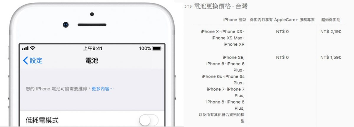 2. Apple iPhone官方電池更換價格與授權維修中心的優惠價格: