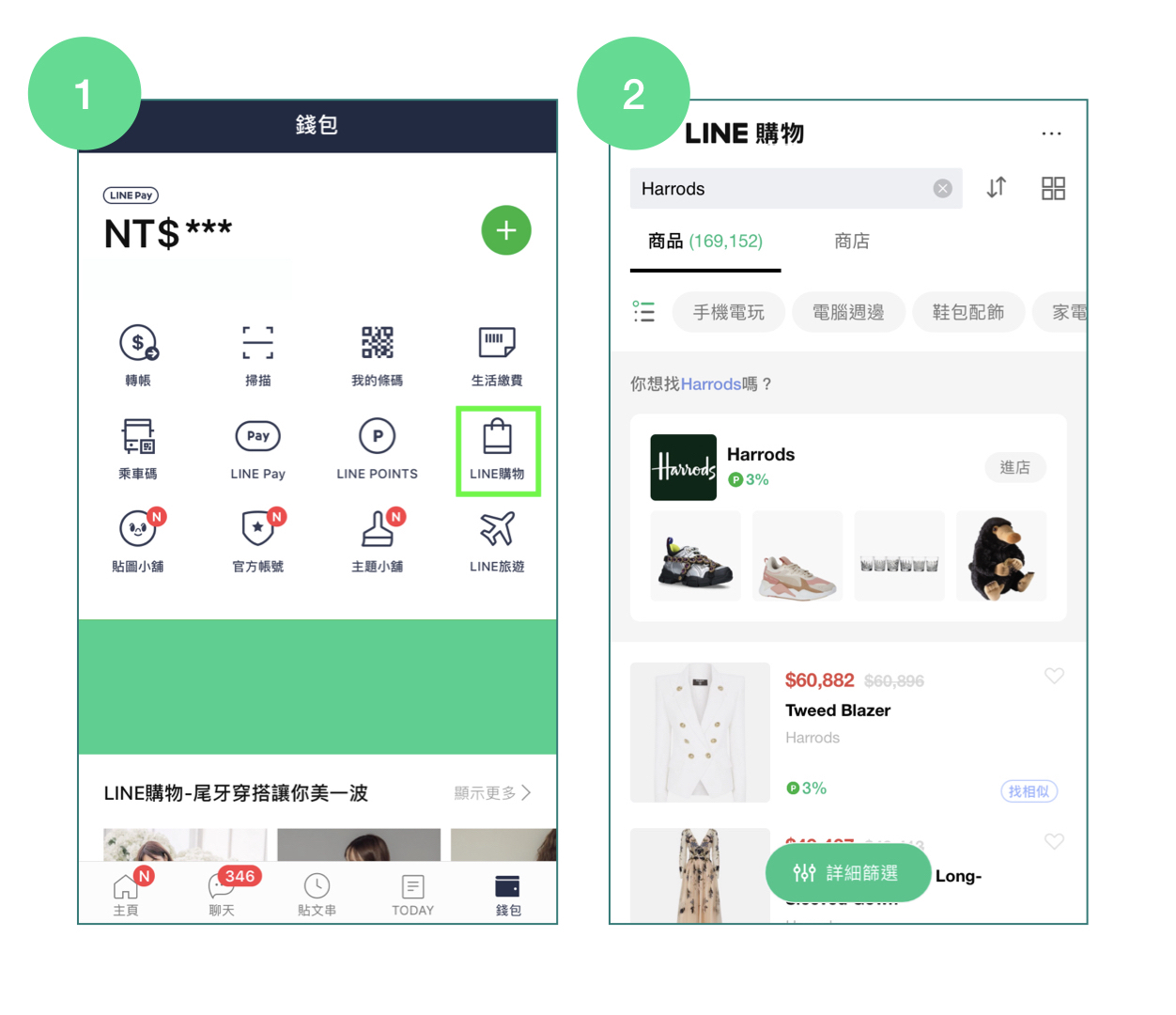 找到LINE購物頁面後,在搜尋頁打上「Harrods