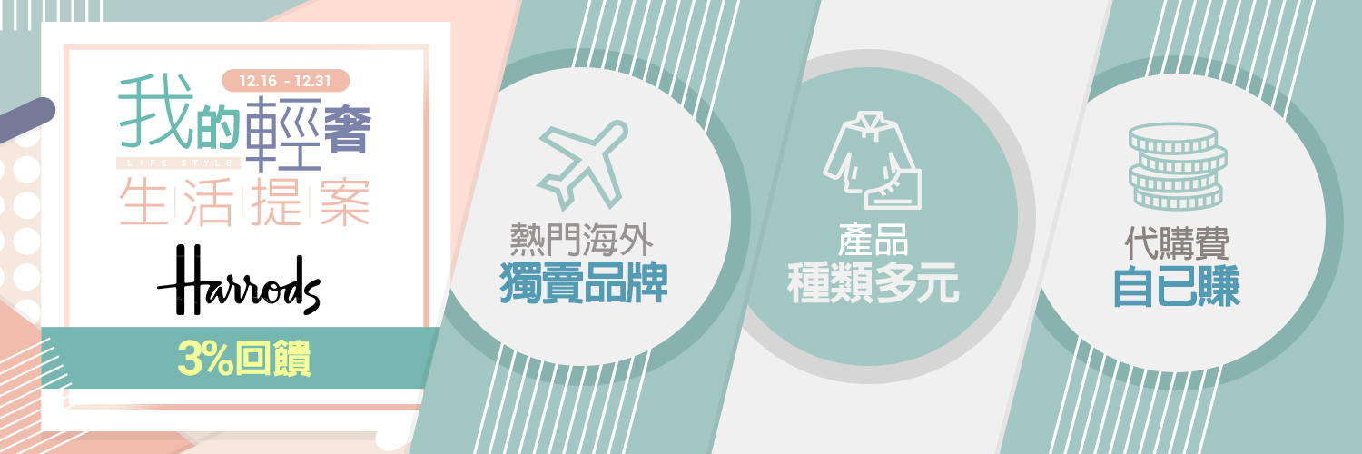 筆記3:12/16 - 12/31由LINE購物跳轉至Harrods頁面有「3%LINE POINTS回饋」
