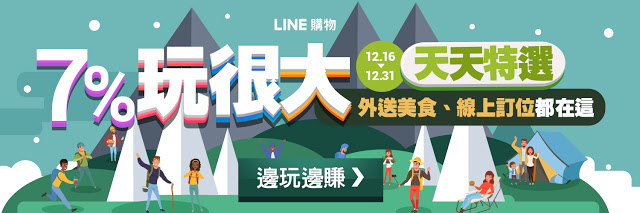 #LINE購物吃喝玩樂專區 天天給你指定商品限時回饋7%!