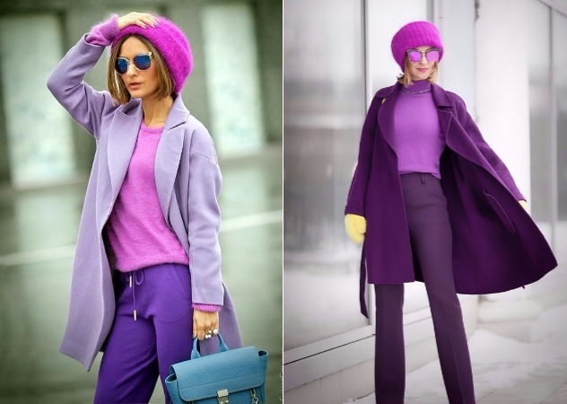 紫色系是2018預計會很夯的顏色,但秋冬就可以搶先穿上。透過不同色階的紫色來做搭配,看起來有整體感也很亮眼!紫色是個適合拿來搭配的顏色,如果都穿同一個紫色看起來會很老氣,實在很不推。