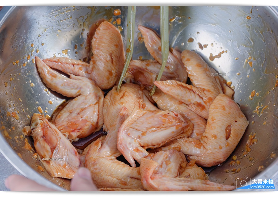 事先將雞翅正反面畫刀(切一刀)方便醃醬入味,