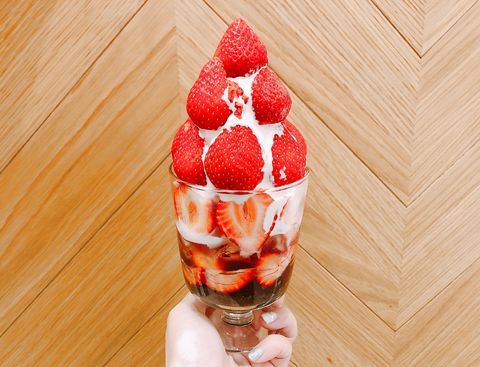 草莓控真的要尖叫!可以選擇日本草莓或是台灣草莓,搭配上草莓果凍、蜂蜜果凍、草莓凍乾及北海道牛乳霜淇淋,通通放入杯中,超澎湃的限定聖代一定要吃到!