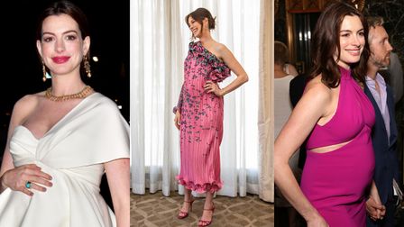 懷孕的安海瑟薇穿上Valentino禮服,展現大器又時髦的孕婦穿搭。