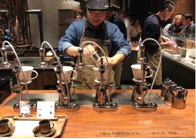 當然也有咖啡師現場手沖咖啡,就是要給你不同於一般星巴克的奢華體驗。