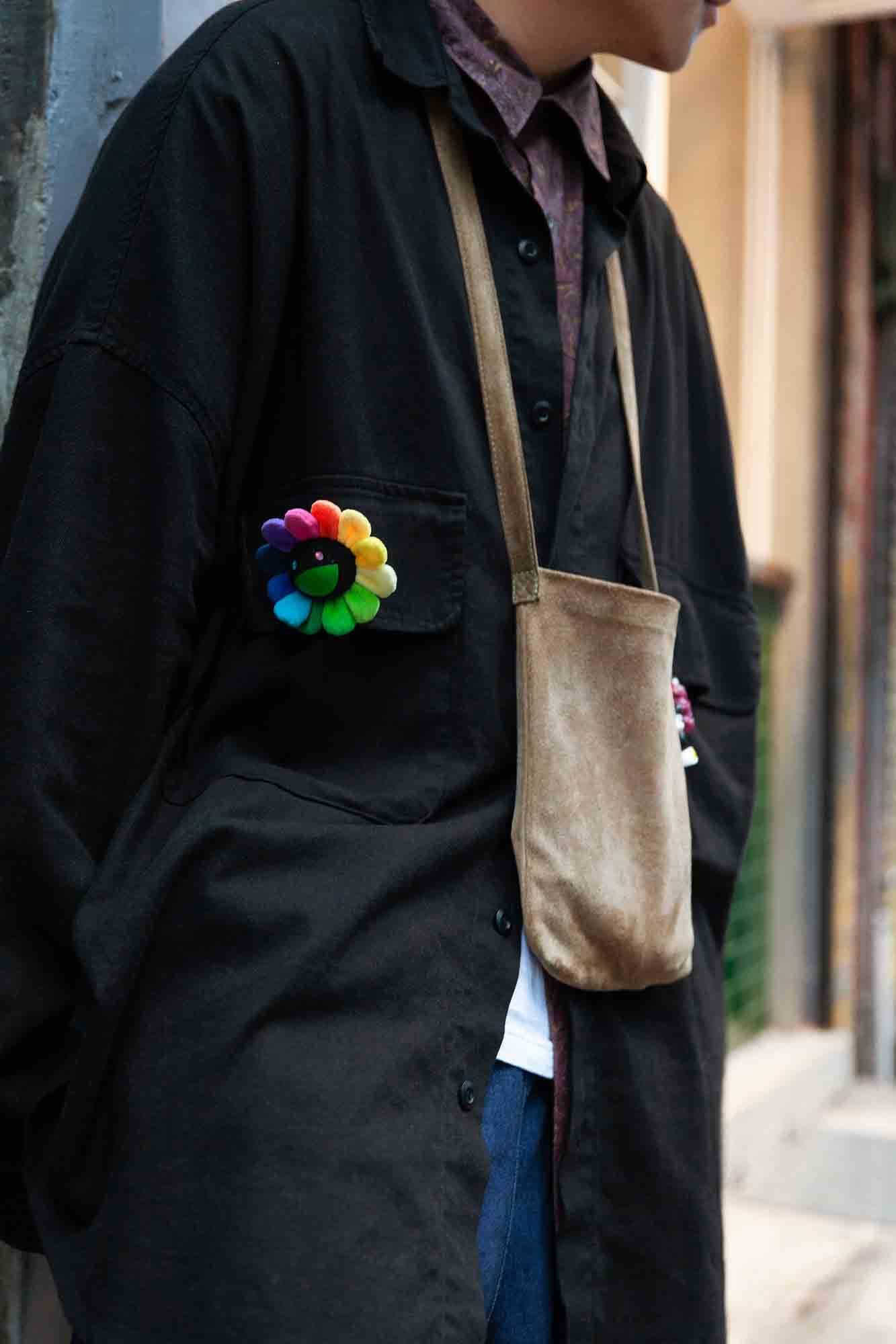 「我真的胖啦,只是都遮起來了,既然如此,穿搭上就寬鬆到底,破壞比例,今天就是6:4,運用極致寬鬆的側邊輪廓來凸顯個人特色。」Tommy 用 one tone 訂出今日穿搭主題,(A)NOWHEREMAN 與 NEW ERA 聯名的黑色 Snapback,搭配極為寬鬆的黑色襯衫,「我原本想搭黑色褲子,但料子沒那麼挺,寬褲都不寬了,我就改穿比較深色的丹寧,搭配黑色 loafer,符合 one tone 且彼此呼應。