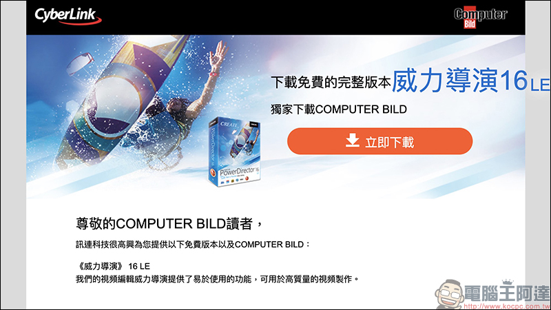 威力導演 16 LE免費下載活動頁面:點我前往