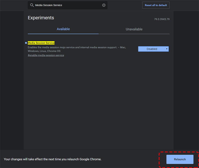 4. 點選下面出現的「Relaunch」按鈕重新啟動 Chrome 就搞定啦!