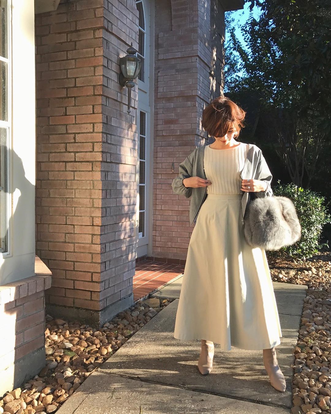 如果你是屬於隨著年齡的增長更希望能擁有女人味的話,穿搭就可以參考甜美與優雅兼具的 IG 穿搭人物 Yuri。微捲的髮絲加上恰巧的蓬鬆度打造出柔和的臉部線條,再搭配上溫柔感十足的毛衣與裙裝,Yuri 的秋冬搭配正好是日本年輕媽媽們參加孩子學校活動最喜愛的裝扮。飄逸度與適度的輕盈感是 Yuri 穿搭的特徵,透過輕鬆而婉約的衣著加深了本身的女人味,高貴氣質的印象感也能隨之提升。Photo : IG @mikiaob, IG @nemochi0517,IG @yuricookie