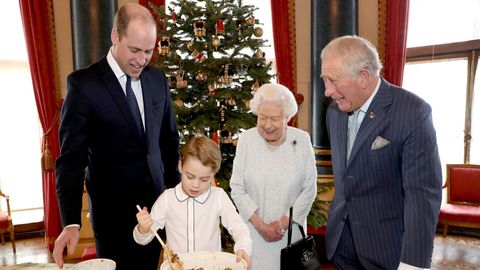 年僅6歲的喬治王子在大人的指示下,按照規則幫助攪拌碗內的食材(遵照習俗,如果從東邊攪拌至西邊,傳說中的智者便會帶來好運),細心地將黑加侖、檸檬皮、薑、與罌粟籽混合均勻。當一切備妥後,再放入幾個皇室紀念版的六便士硬幣,期待幸運得主能在接下來的2020年一切順利。