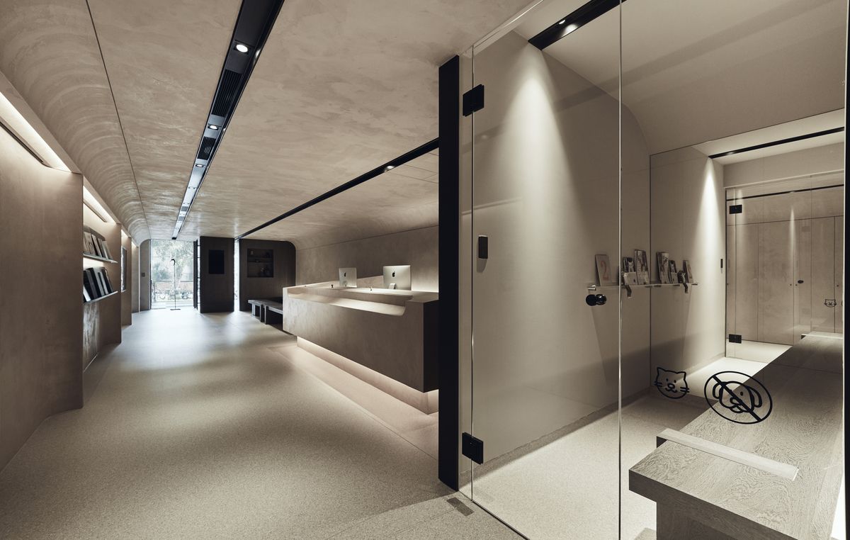 醫院本該是個解決問題的場所,而人們的恐懼往往來自於未知,於是設計師便將那處本了無生氣的場域,打造成一間能和主人及動物們好好對話的懇談室,那麼什麼地方都該像墾談室一樣,我們都該溫柔說話。設計師由空間材質出發,利用線條及光線,打造出令飼主與寵物皆能獲得溫柔撫慰的場所。