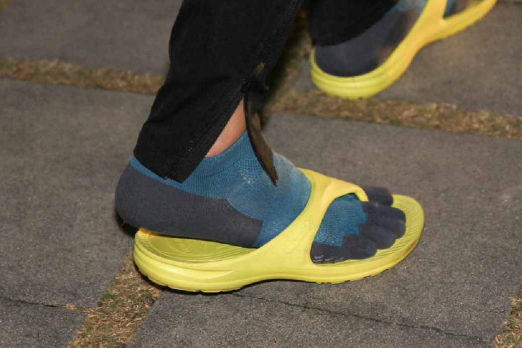 像是近年來因後底風潮而興起的 Hoka One One,契合流行外觀同時又展現專業跑鞋知識,而 HOOD to COAST 上本預期找看看內坎碳纖維片 CARBON X 的我們,卻無意發現他的前輩 EVO CARBON ROCKET,透過厚實 PROFLY 中底達到減緩衝擊效果,碳纖維支撐片則保持穩定,緩震整合方面一直都是 Hoka One One 強項。另外還有不只一位跑者穿著ㄚ拖,從這兩、三年前開始在跑友圈走紅,如今能見度越來越高,柔軟調性與實用性取向,紛紛讓不少運動品牌也加入這行列。