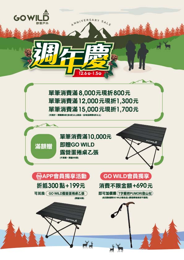 GO WILD 野聚戶外是摩曼頓旗下的新形態都會戶外概念店,目的拉近都會與戶外之間的距離,而今 12 月正式在台販售「國家地理」戶外服飾,光看到其標誌性的黃框 logo 就能馬上聯想到探險保育及教育形象,而休閒取向的設計更親民、更適合日常穿搭,不過簡單俐落外觀背後是洋溢愛地球的心,國家地理合股有限公司會將 27% 的收益回饋給非營利性質的國家地理學會,以資助科學、探索、保育和教育領域。同時 GO WILD 野聚戶外在年終也推出優惠活動,期望跨年時有國家地理、BILLABONG、CHUMS 等流行戶外兼具品牌陪伴你在戶外看煙火,上山看日出則能換上 MILLET、Lafuma 機能裝備來溫暖過節。