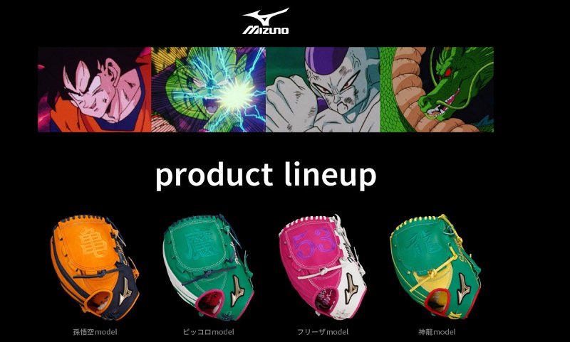 日本萬代旗下品牌「BANDAI FASHION COLLECTION」,近期與日本運動品牌 「美津濃」合作推出《 七龍珠Z 》聯名主題棒球系列用品,將孫悟空、比克、弗利沙、神龍等七龍珠元素,加入棒球手套、捕手專用護具、棒球等商品。