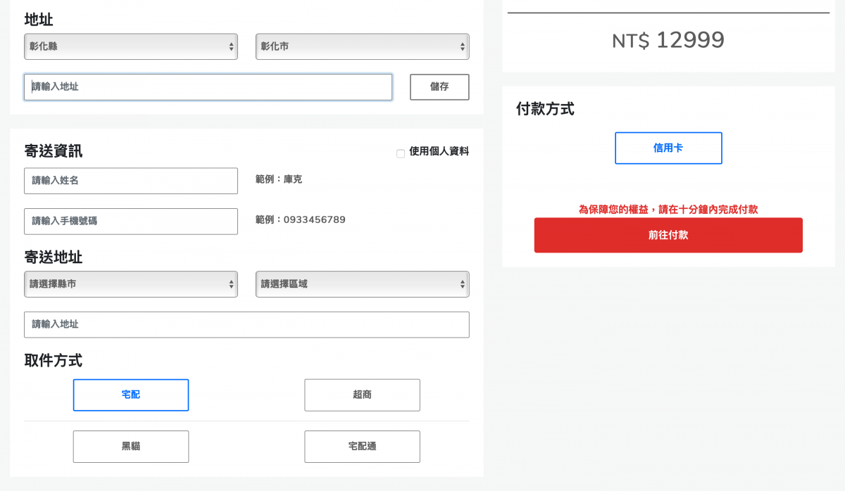 挑選到適合自己的手機之後,只要將該選項加入購物車之後便可以直接結帳。目前在 Sogee48 上只提供信用卡付款,以及提供黑貓及宅配通兩種配送方式。